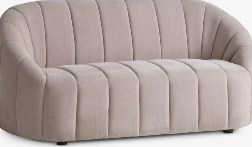 2-zitsbank in stof. Zit- en rugkussens in schuim. B160 x H73 x D85 cm