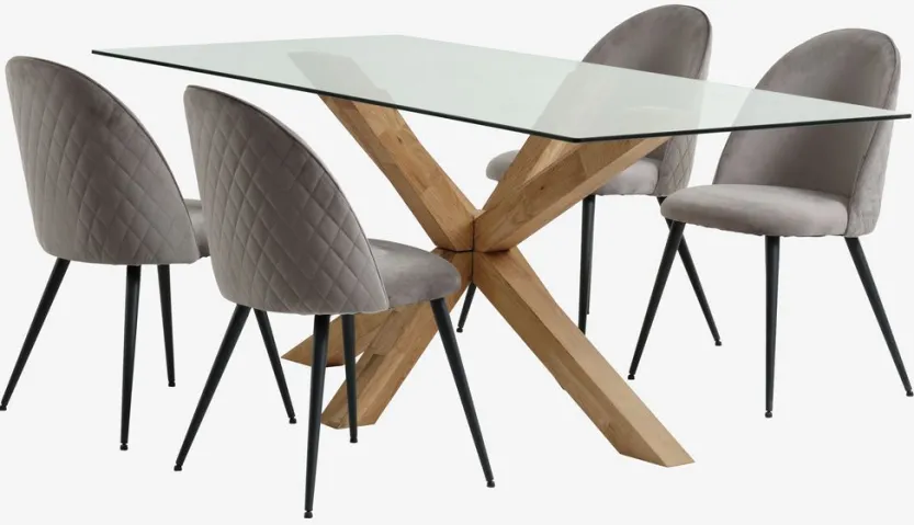 AGERBY L190 tafel eiken + 4 KOKKEDAL fluweel grijs