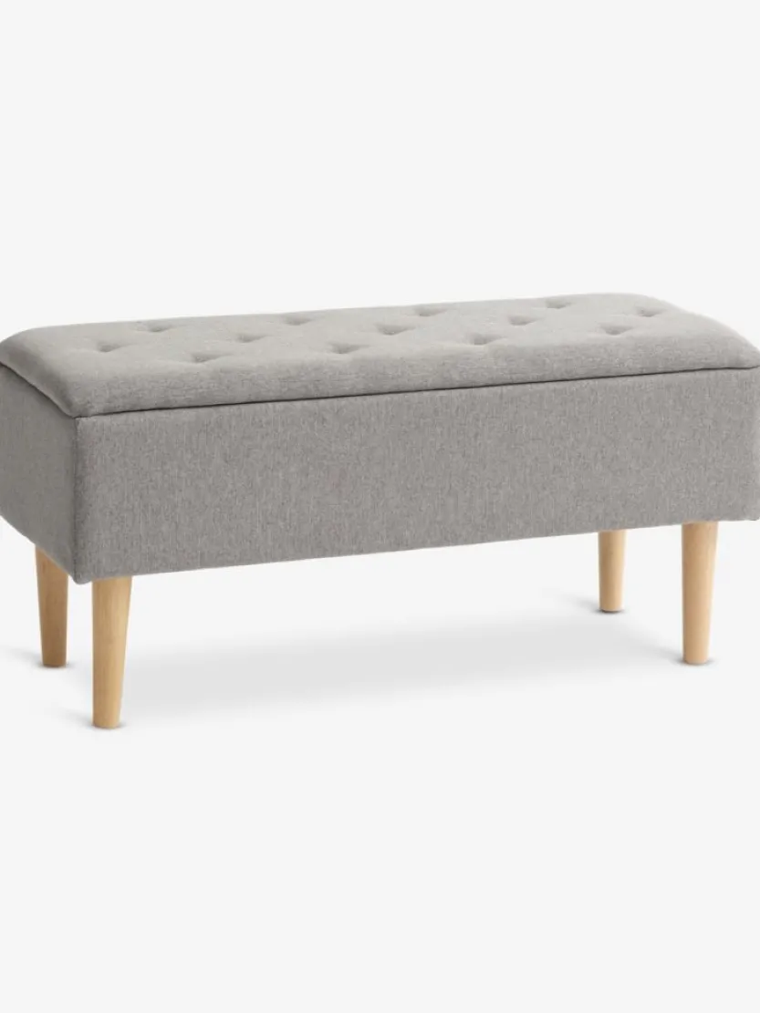 Stof en massief beuken. Met opbergruimte. B95 x H45 x D37 cm