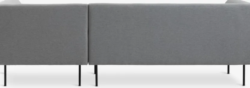 3-zitsbank van stof. Rug- en zitkussens van schuim. Poten van staal. Kan niet worden gespiegeld. B230 x H74 x D76/169 cm
