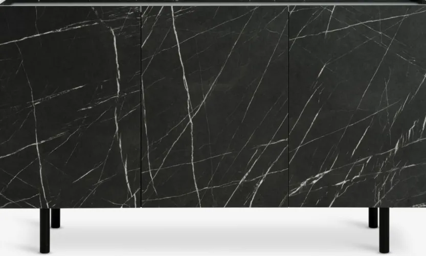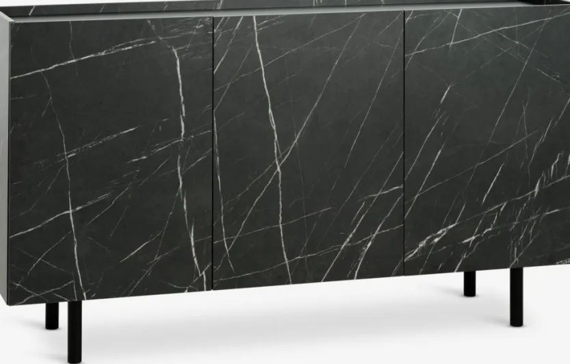 Dressoir KRONDAL 3 deuren zwart/marmer kleur