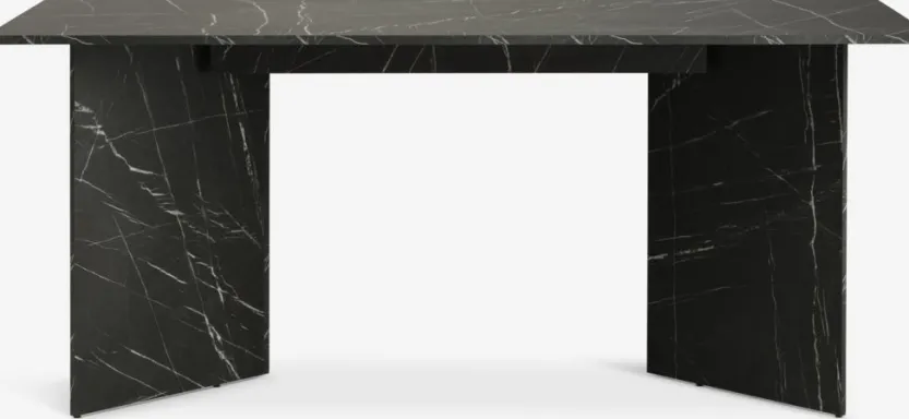 Eettafel in deco fineer met een zwart marmeren look. B90 x L180 x H77 cm