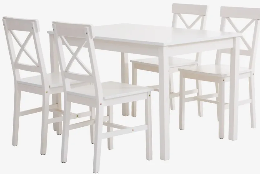EJBY L118 tafel wit + 4 EJBY stoelen wit