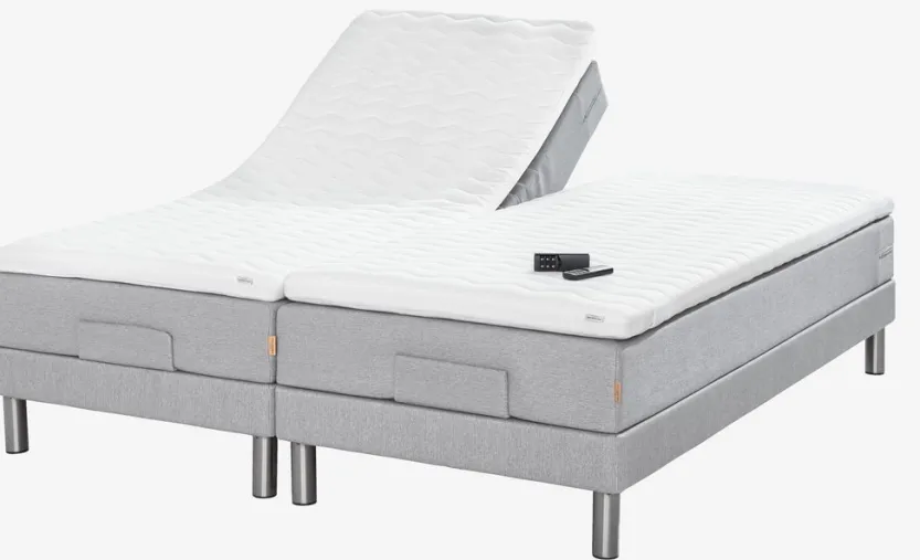 Elektrisch verstelbaar bed 90×200 cm met draadloze afstandsbediening. 1 springveermatras met pocketveren 250/m², gevuld met polyetherschuim. Dit matras is verdeeld in 7 comfortzones die een nauwkeurige en optimale ondersteuning bieden. 1 topmatras, 8 cm dik met een kern van ademende latex dat overtollige warmte effectief afvoert. Wasbare stretch tijk met een zachte dikke voering. 1 elektrisch verstelbare bodem. Incl. poten. Excl. hoofdbord.