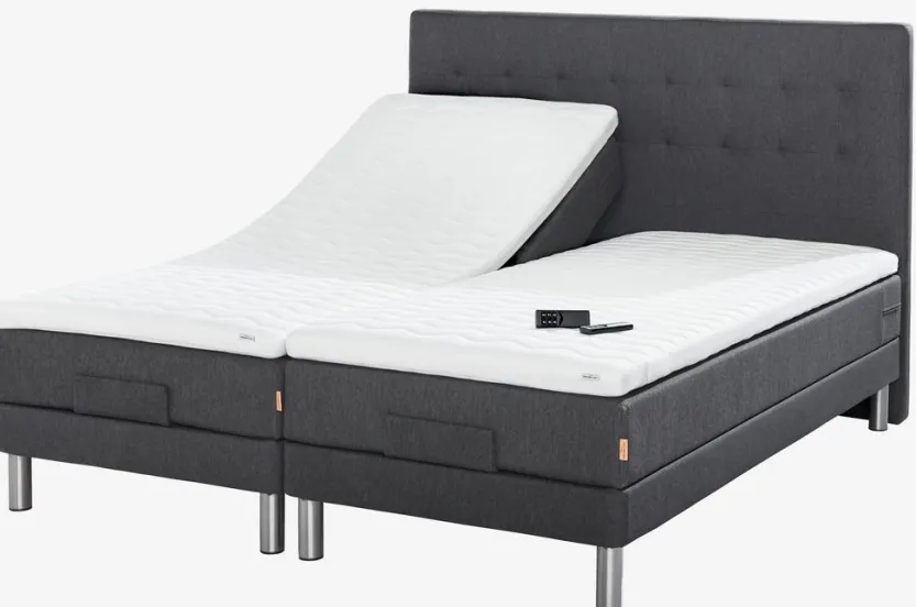 Elektrisch verstelbaar bed 90×200 cm met draadloze afstandsbediening. 1 springveermatras met pocketveren 250/m², gevuld met polyetherschuim. Het matras is verdeeld in 7 comfortzones die een nauwkeurige en optimale ondersteuning bieden. 1 topmatras, 8 cm dik met een kern van ademende latex dat overtollige warmte effectief afvoert. Wasbare stretch tijk met een zachte dikke voering. 1 elektrisch verstelbare bodem. Incl. poten. Excl. hoofdbord.