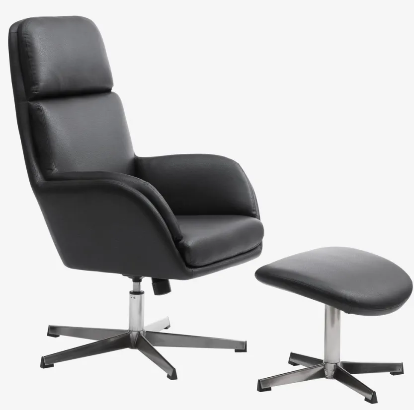 Be the first to review “Fauteuil TANKEDAL met voetenbank zwart kunstleer” Reactie annuleren