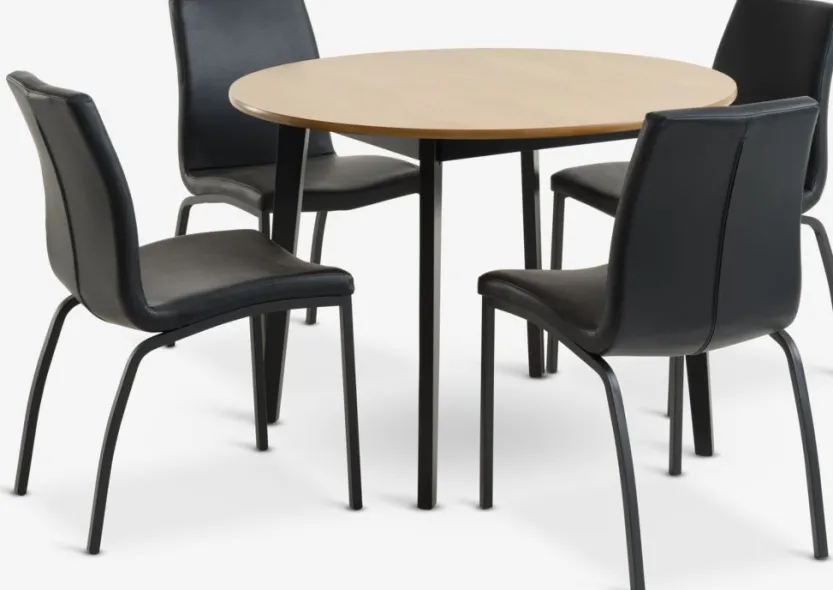 JEGIND Ø105 tafel eiken + 4 ASAA stoelen zwart
