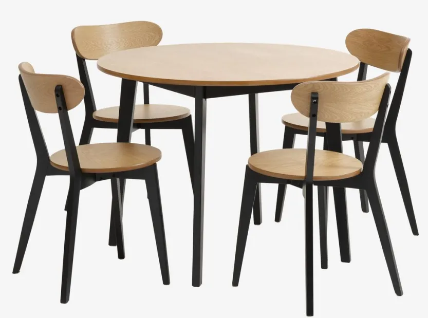 JEGIND Ø105 tafel eiken + 4 JEGIND stoelen eiken/zwart