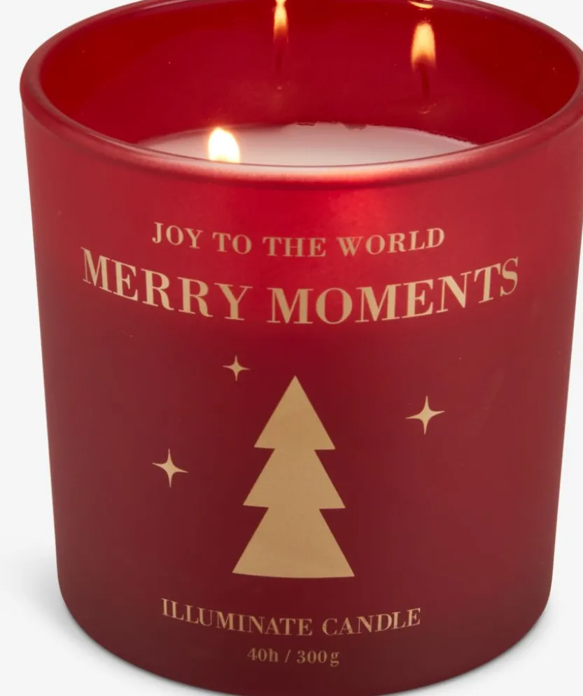 Rode kaars met een gladde afwerking en een feestelijke opdruk. De kaars heeft een brandduur van 40 uren en is perfect voor het creëren van een warme kerstsfeer. Ø10 x H10 cm.