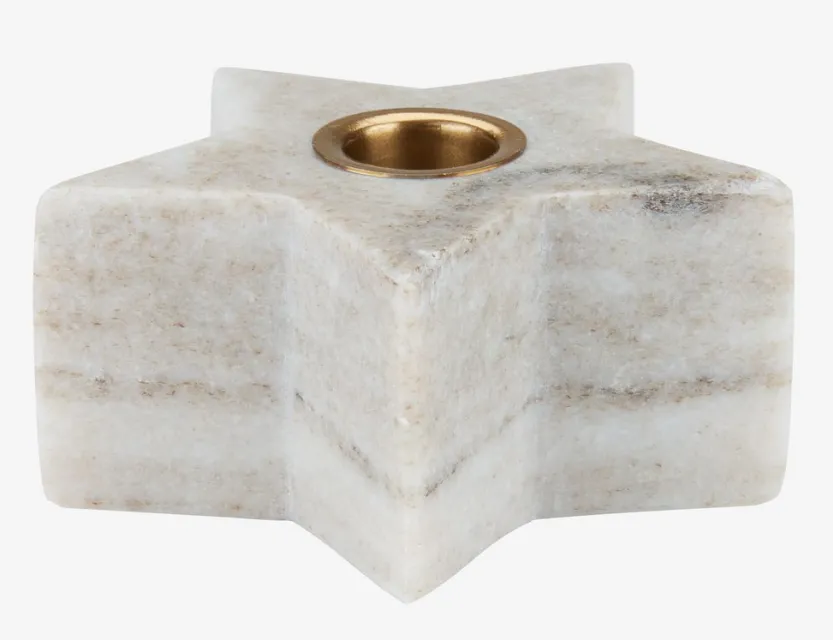 Bruine kandelaar in de vorm van een ster, gemaakt van marmer met een stalen houder. Deze elegante kandelaar voegt een feestelijke sfeer toe aan elke ruimte en is ideaal voor kerstdecoratie. Ø10 x H5 cm