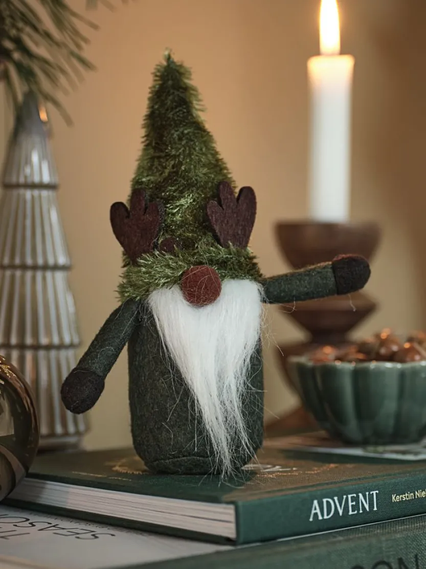 Set van twee kerstelfjes in verschillende tinten groen. Deze charmante elfjes zijn voorzien van schattige rendiergeweien en lange witte baarden. De ene elf heeft een gebreide puntmuts, terwijl de ander een pluizige muts heeft. Perfect om je kerstdecoratie een speelse en feestelijke touch te geven. B9 x L5 x H20 cm.