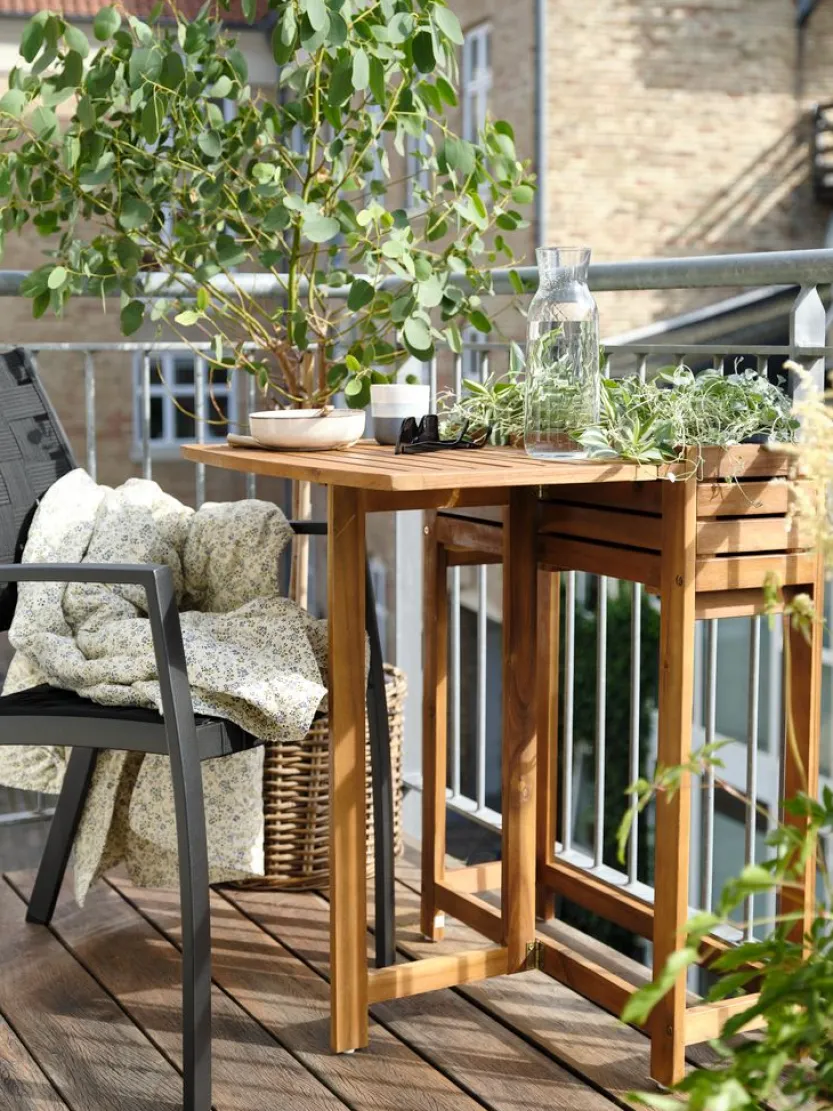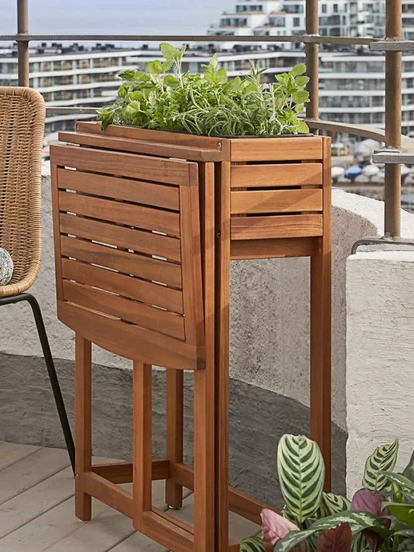Opvouwbare tafel van geolied FSC® hardhout met een ingebouwde plantenbak om je favoriete planten te tonen. Deze rechthoekige tafel is opvouwbaar en ideaal voor compacte balkonruimtes, en biedt een praktische en stijlvolle oplossing voor buiten. B64 x L63 x H77 cm