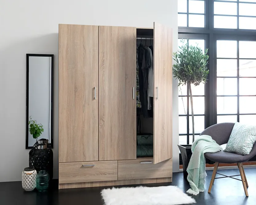 Kledingkast ELLESTED 144×200 3 deuren 2 lades eiken kleur