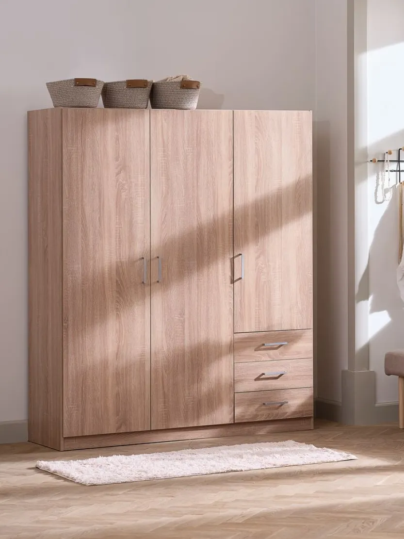 Kledingkast FANDRUP 145×176 3 deuren 3 lades licht eiken