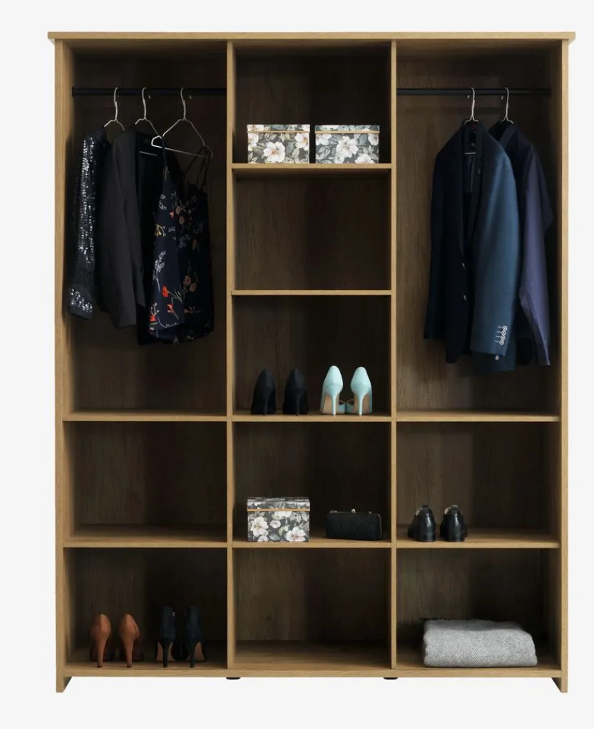 Deco fineer. Kledingkast inrichting: 8 schappen en 2 kledingroedes. B166 x H210 x D62 cm