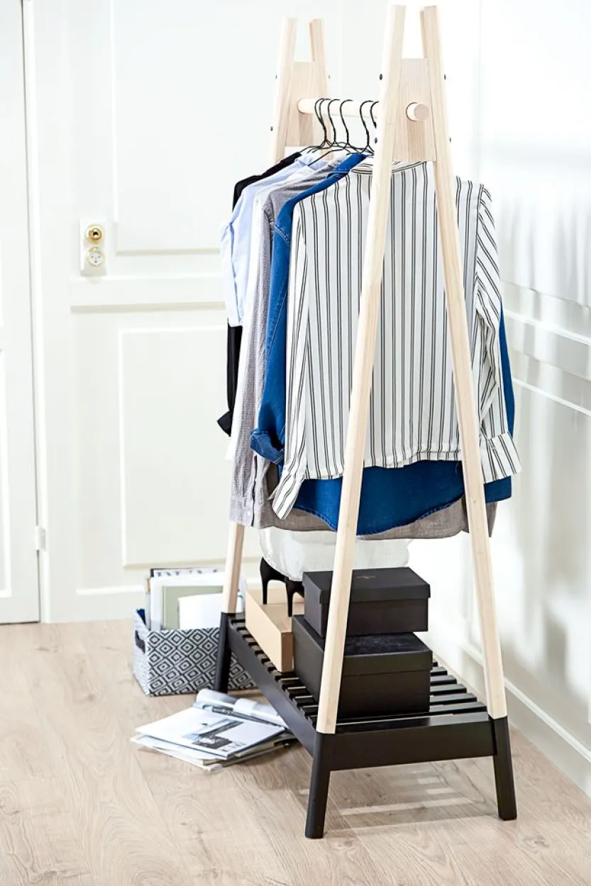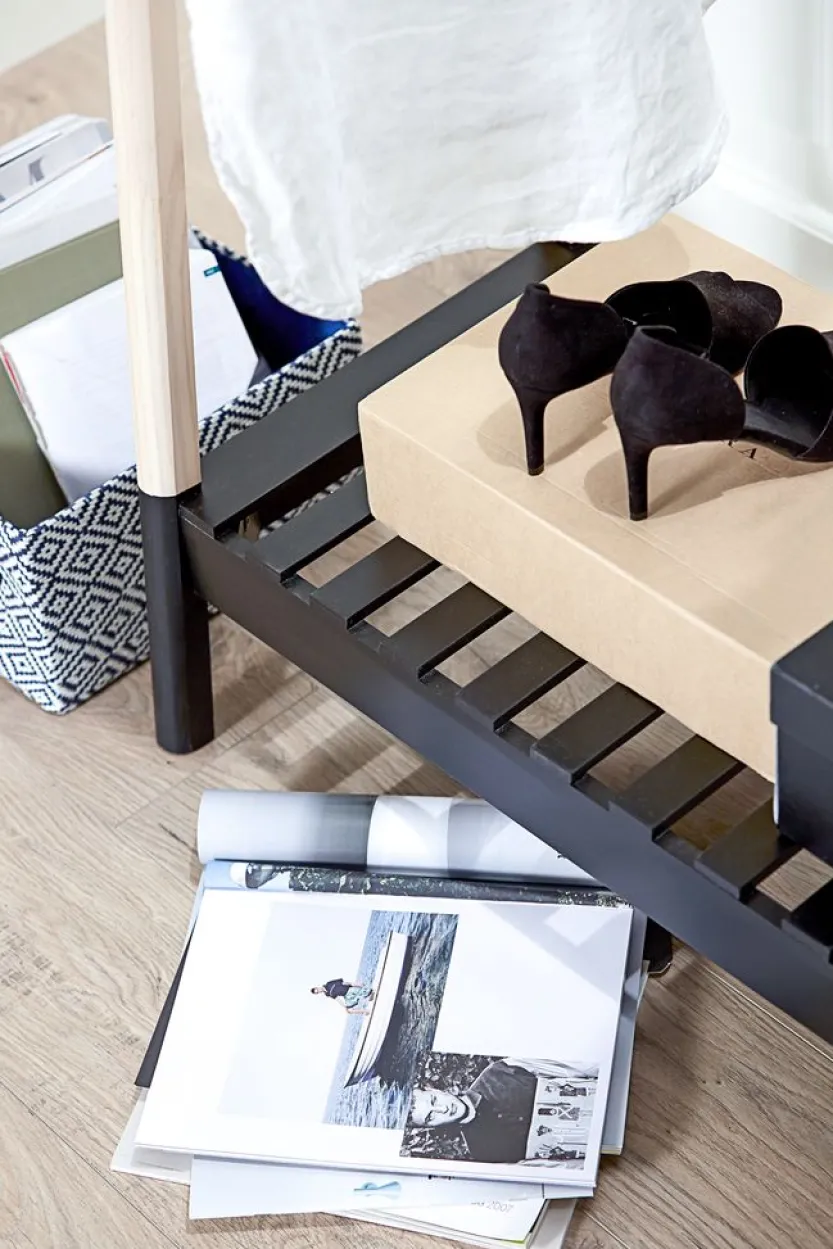 Kledingrek JENNET met schoenenrek naturel/zwart