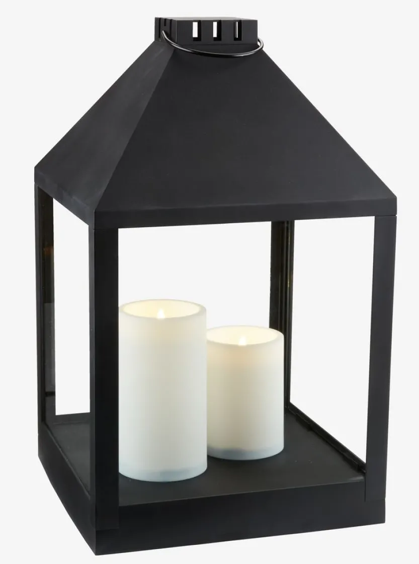 Zwarte lantaarn gemaakt van glas en plastic. Deze stijlvolle lantaarn is geschikt voor zowel binnen- als buitengebruik en biedt een sfeervolle verlichting. De lantaarn heeft een timerfunctie, waardoor je de verlichting eenvoudig kunt instellen. Werkt op 3 AA-batterijen (niet inbegrepen). B30 x L30 x H50 cm