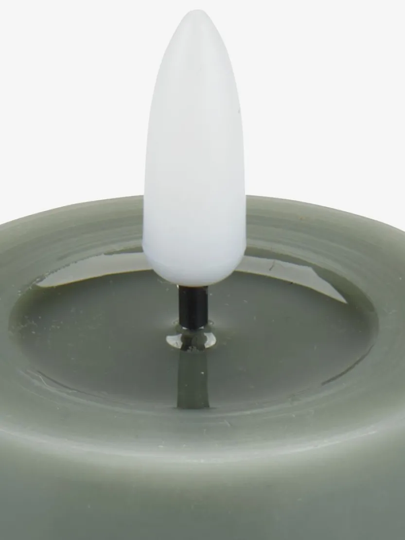 Groene LED-kaars met een strak cilindrisch ontwerp. Deze kaars is voorzien van een ingebouwde LED die een warm licht van 2700 K uitstraalt. De kaars heeft een handige timerfunctie en een brandduur van 30.000 uren. Werkt op 2 AA-batterijen (niet inbegrepen). Perfect voor het creëren van een gezellige sfeer binnenshuis. Ø5 x H15 cm.
