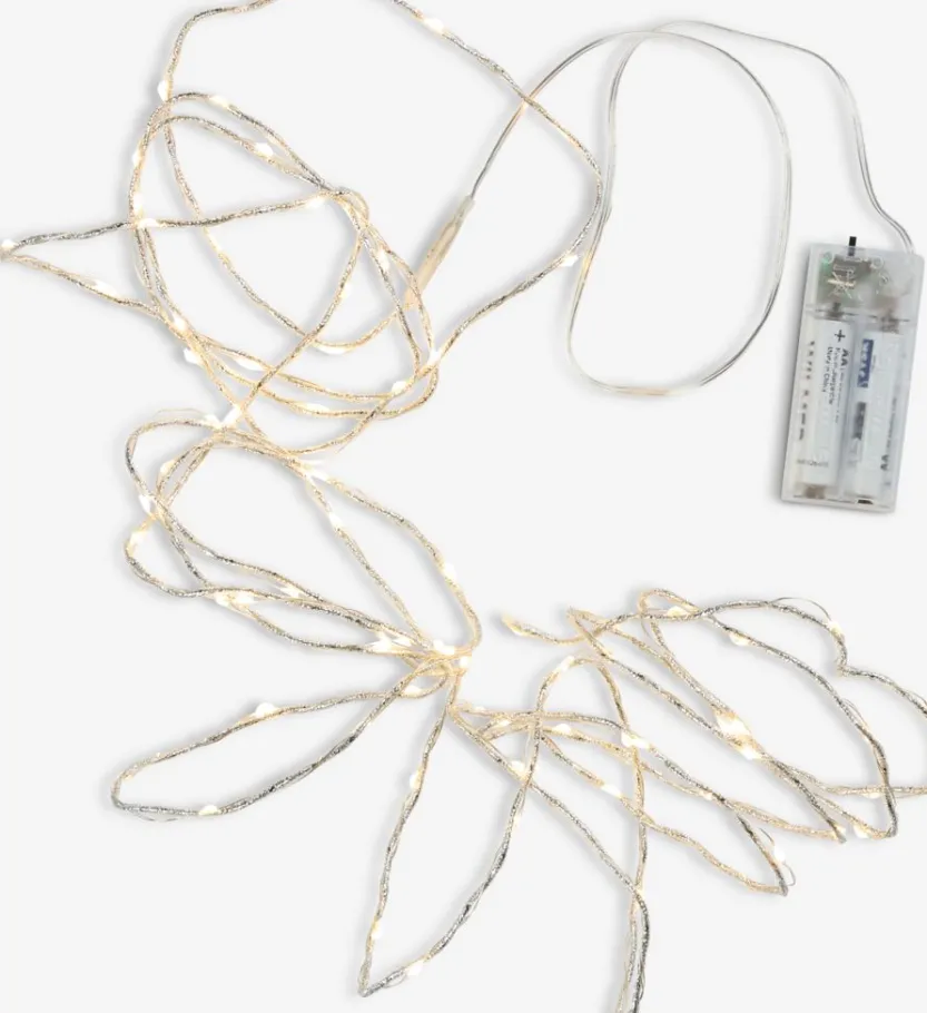 Indoor lichtsnoer. 80 LED. Warm wit licht. Met timer. Excl. batterijen. 3.8 m verlichting + 0.5 m snoer
