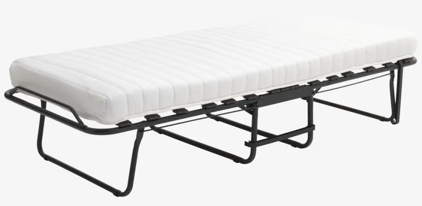 Staal. 11 cm dik matras met drukverlagend traagschuim en polyurethaanschuim. Met latten. Inklapbaar. B80 x L193 x H45 cm