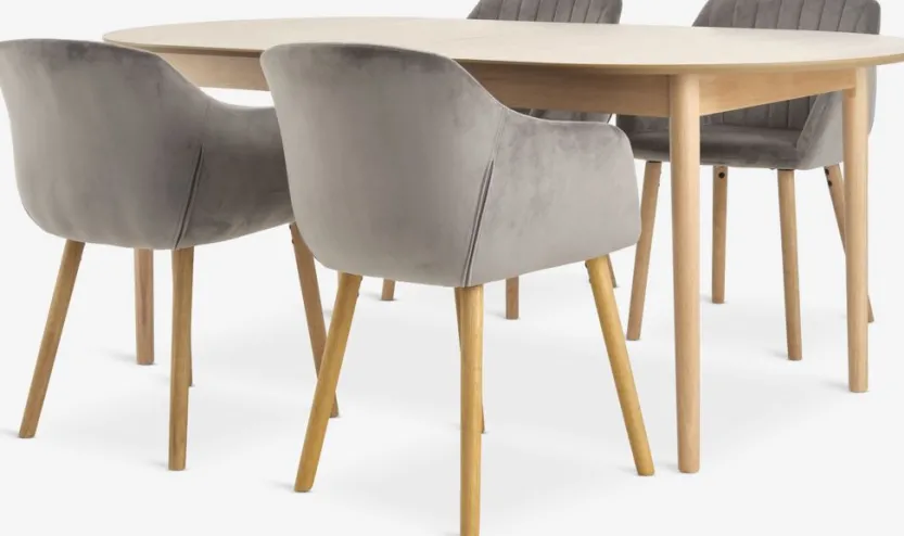 MARSTRAND L200/280 tafel eiken + 4 ADSLEV fluweel grijs
