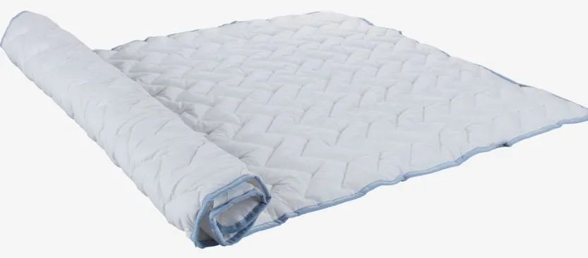 Wasbare matrasbeschermer 120×200 cm met een zachte, dikke quilt van gesiliconiseerde holle vezel (100% gerecycled). Elastische hoekbanden.