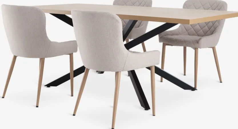 NORTOFT L200 tafel eiken + 4 BELLINGE stoelen zand/eiken