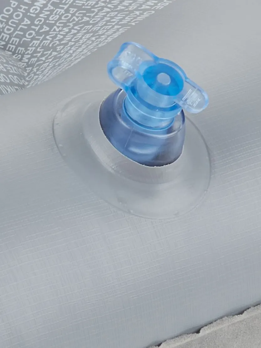 Opblaasbaar kussen van PVC met een zacht fluweel oppervlak. B42 x L26 x H10 cm