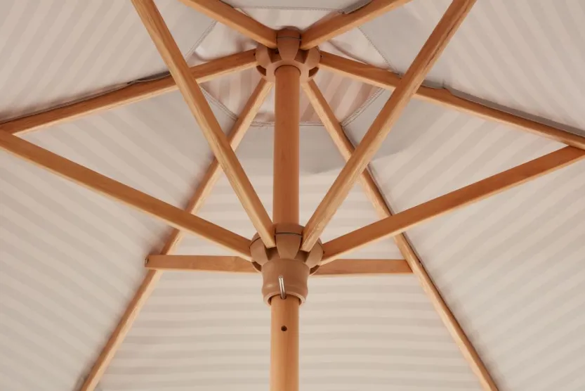 UV-beschermde polyester kap en gelakte FSC® hardhouten frame. Ø200 x H234 cm