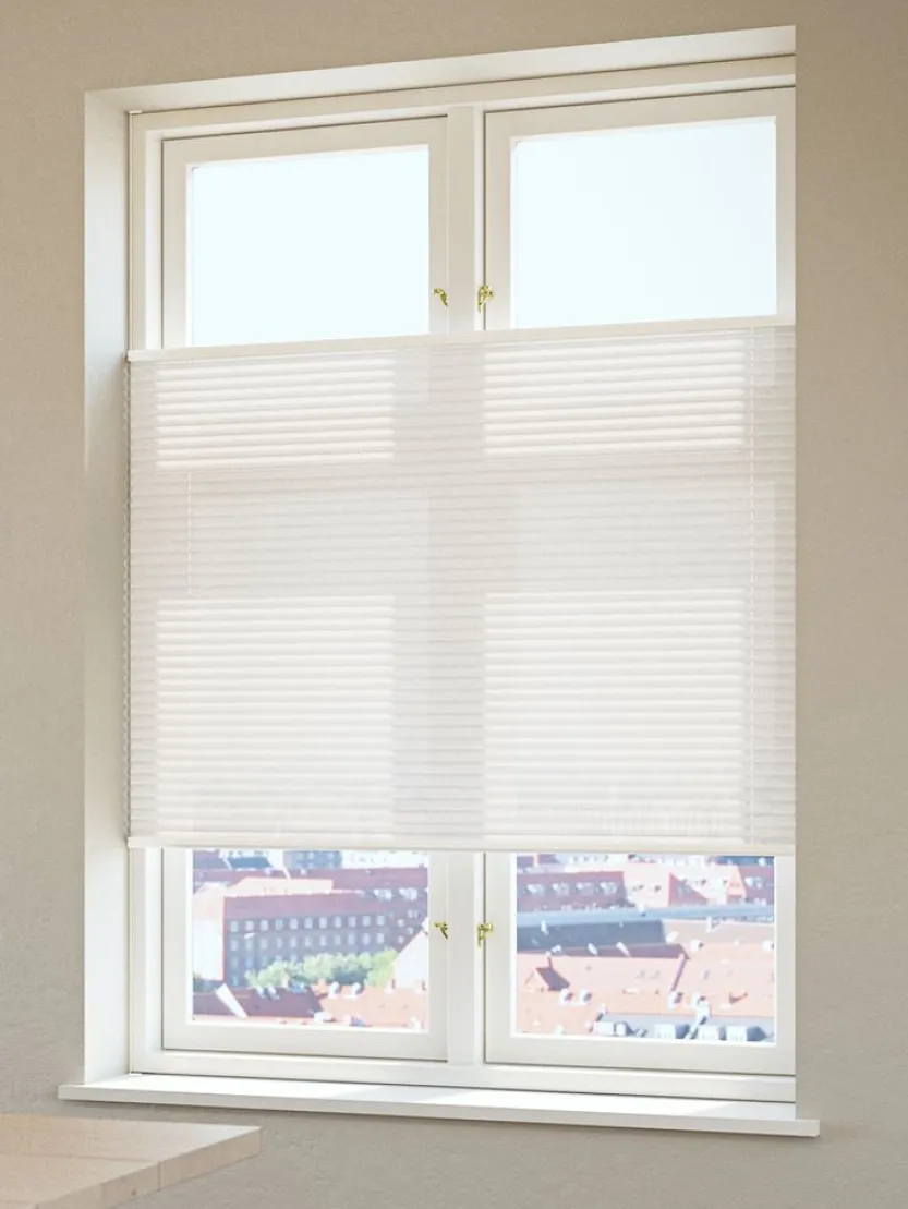 Dit veelzijdige, koordloze plisségordijn kan aan de boven- en onderkant worden versteld. Hiermee kun je een perfecte balans creëren tussen het licht en de privacy in je woning. Kan in de breedte worden ingekort. B60 x H130 cm