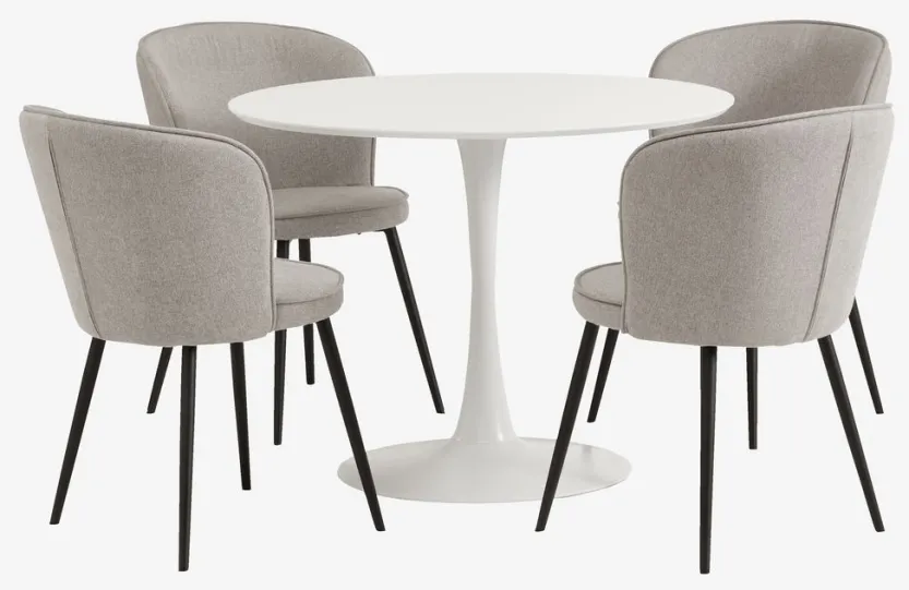 RINGSTED Ø100 tafel wit + 4 RISSKOV lichtgrijs