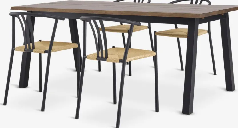 SKOVLUNDE L200 tafel donker eiken + 4 JYDERUP zwart/naturel