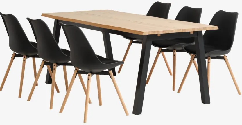 SKOVLUNDE L200 tafel naturel eiken + 4 KASTRUP stoelen zwart