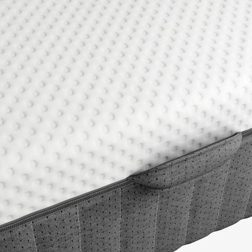 27 cm dikke springveermatras 80×200 cm met pocketveren 289/m², verdeeld in 11 comfortzones. Het matras is gevuld met drukverlagend AIR-traagschuim en gelschuim aan de ene kant en polyetherschuim aan de andere kant. AIR-traagschuim vormt zich precies en snel naar de contouren van je lichaam, zelfs in een koele slaapomgeving. Wasbare tijk.
