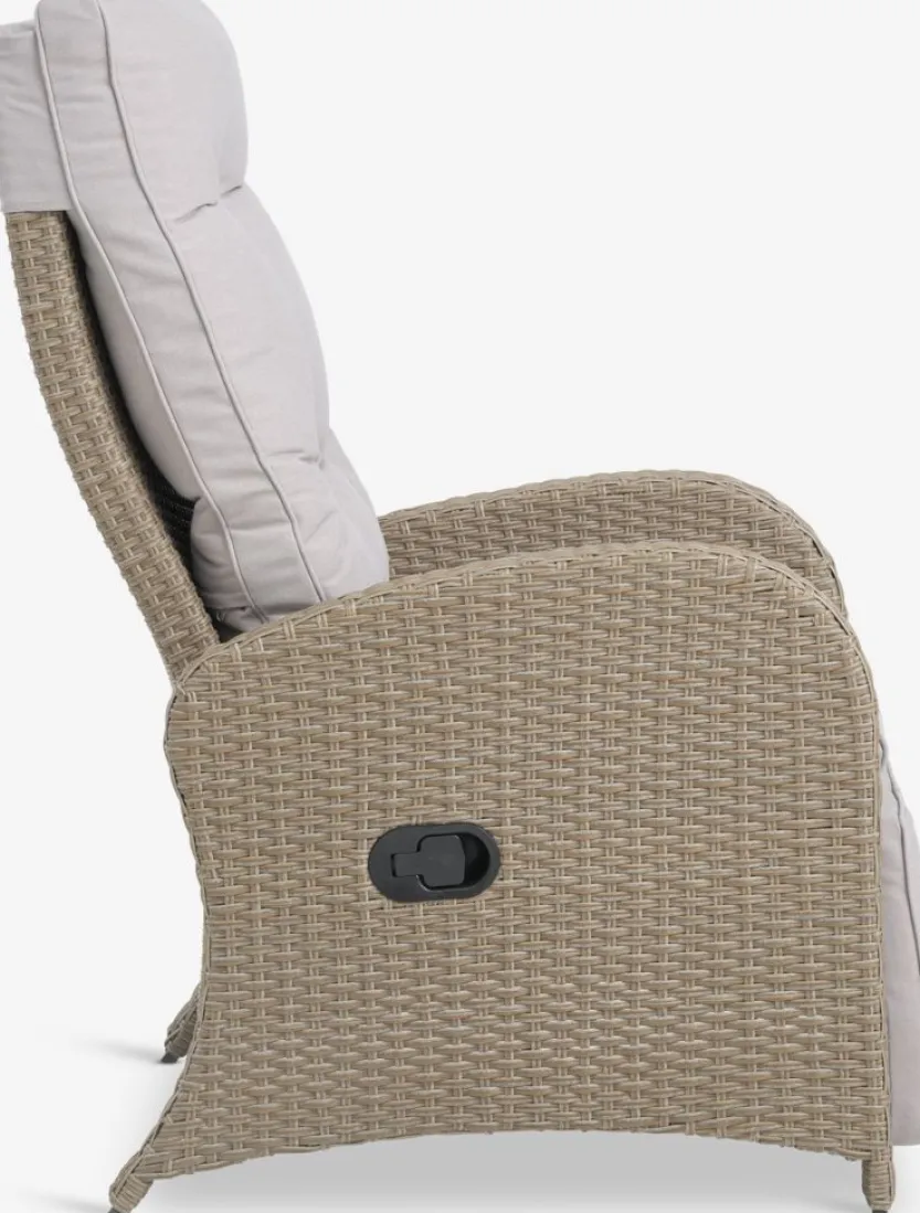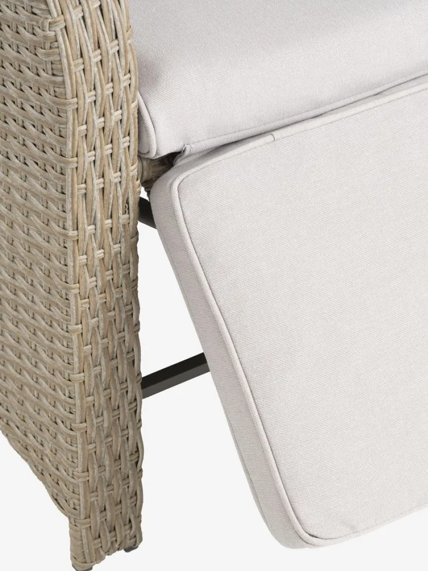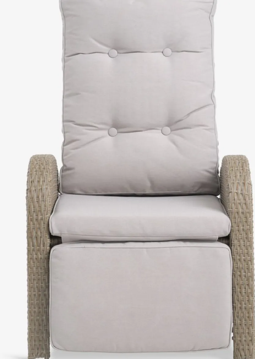 Standenstoel van aluminium en polyrotan. Traploos verstelbare rugleuning en voetensteun. Incl. luxe kussen met een duurzaam, structuurgeweven hoes. B66xH102xD78 cm