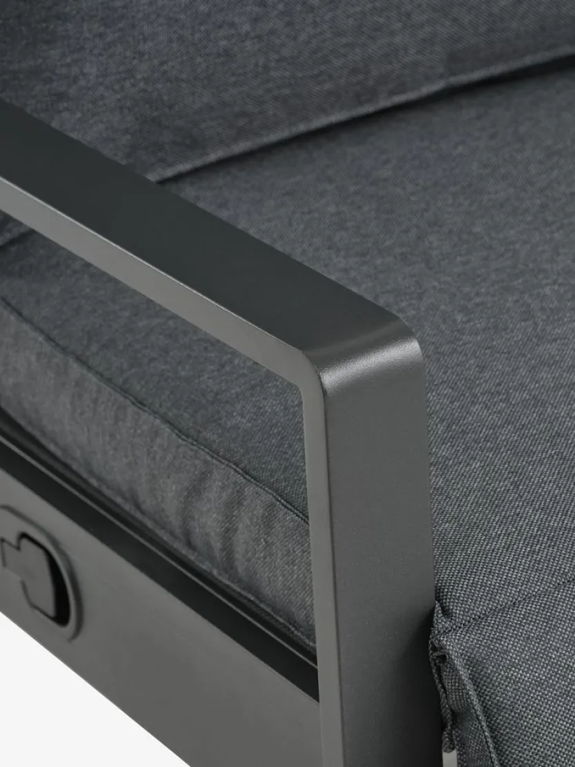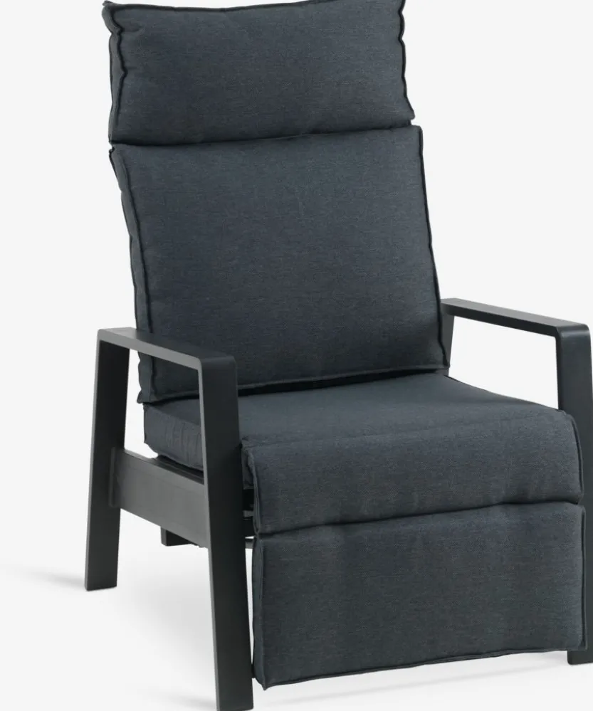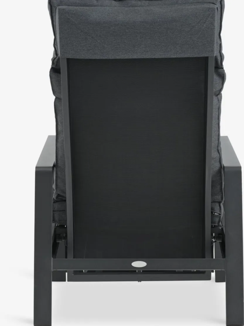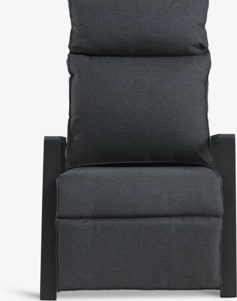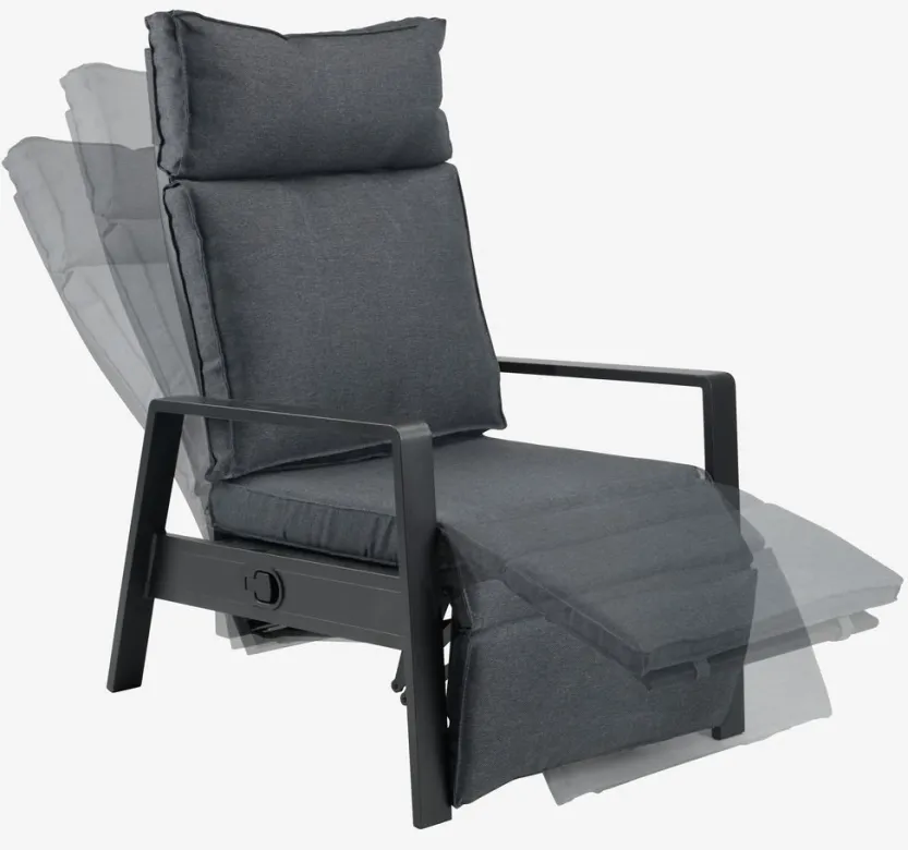 Standenstoel van aluminium en textileen. Traploze verstelling van rugleuning en voetensteun. Incl. luxe kussens met een duurzaam, structuurgeweven hoes. B70 x H107 x D89 cm