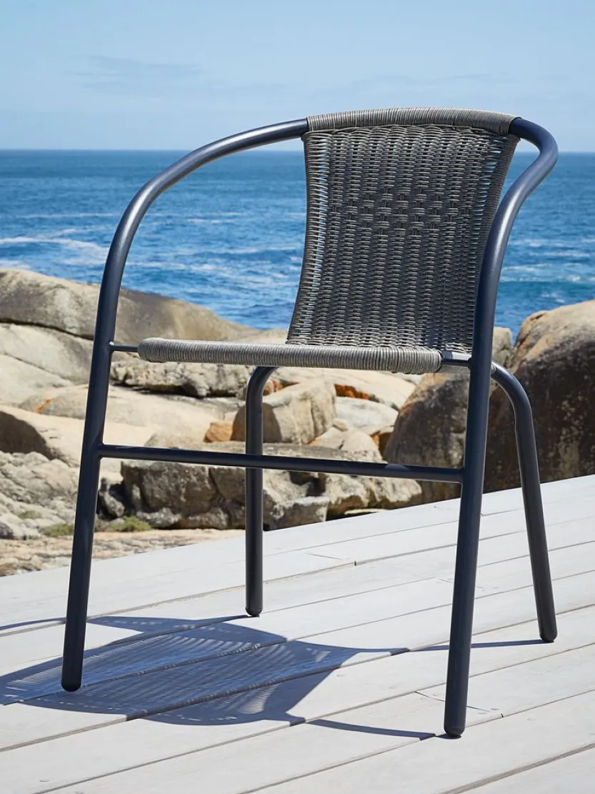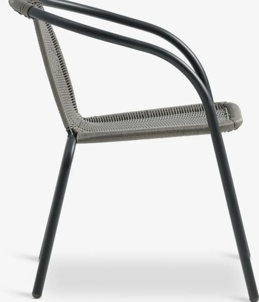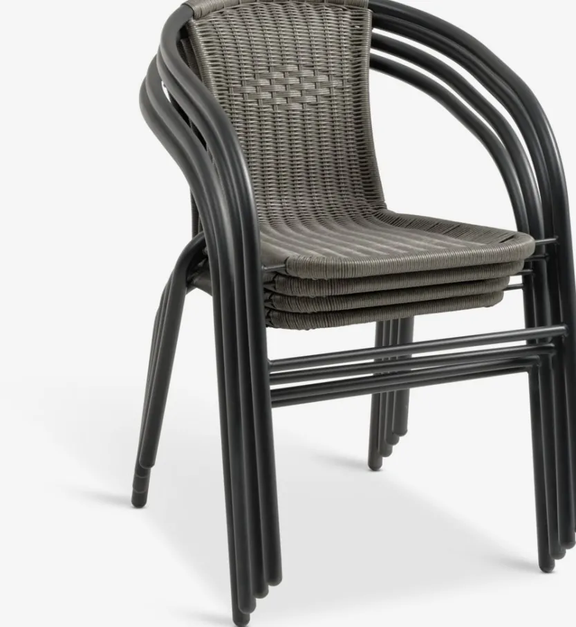 Staal en polyrotan. Stapelbaar.