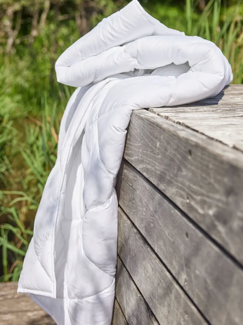 Synthetisch dekbed 135×200 cm met een luchtige, isolerende vulling van gesiliconiseerde, holle spiraalvezels, 950g. Zachte tijk van 100% polyester microvezel. Wasbaar op 60°C.