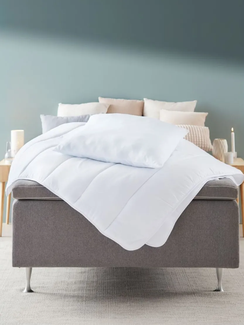 Synthetisch kussen 60×63/70 cm met lichte, luchtige vulling van gesiliconiseerde, spiraalvormige holle vezels (100% gerecycled), 400 g. Zachte tijk van 100% polyester-microvezel. Wasbaar op 60°C.