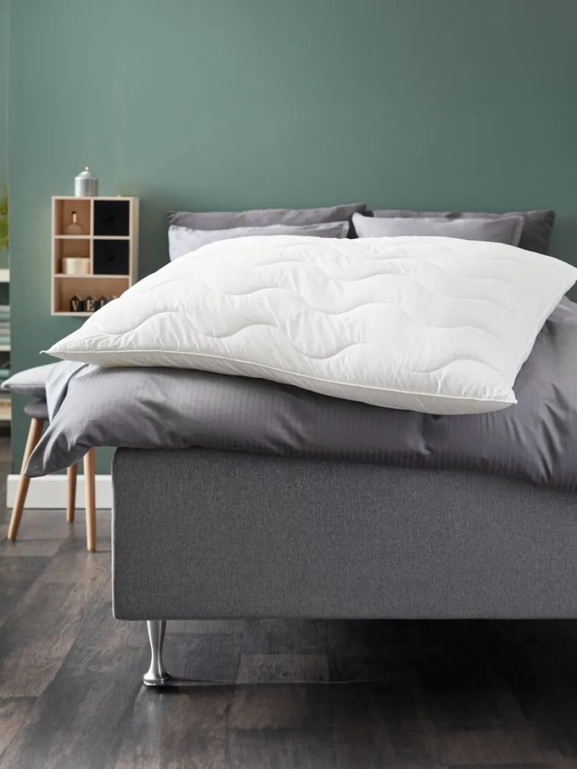 Synthetisch kussen 70×100 cm met lichte en luchtige vulling van gesiliconiseerde holle spiraalvezels, 1500g. Tijk van 65% polyester/35% katoen. Gevoerd met holle vezels. Wasbaar op 60°C.