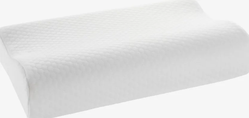 Traagschuim kussen 30x47x9/7 cm van drukverlagend traagschuim vormt zich naar de contouren van je nek en schouders. Tijk van 100% polyester, wasbaar op 40°C. Incl. opbergtas.