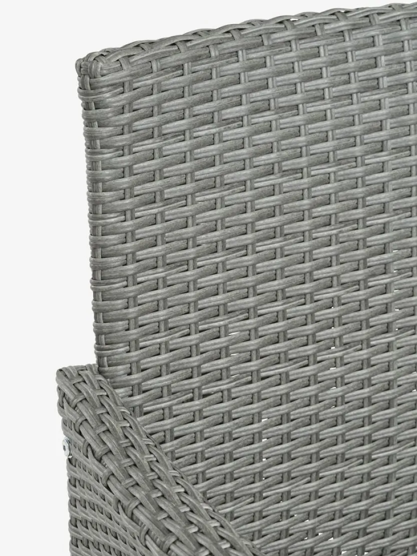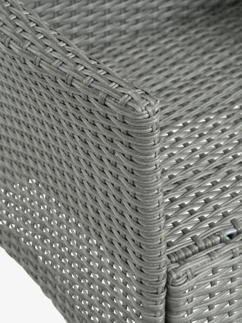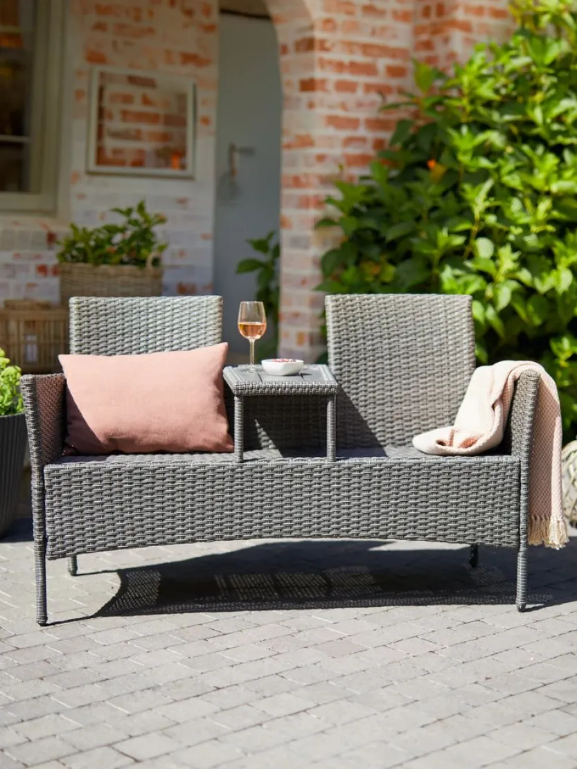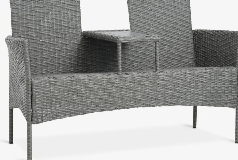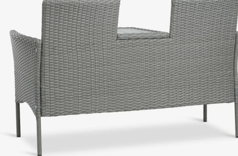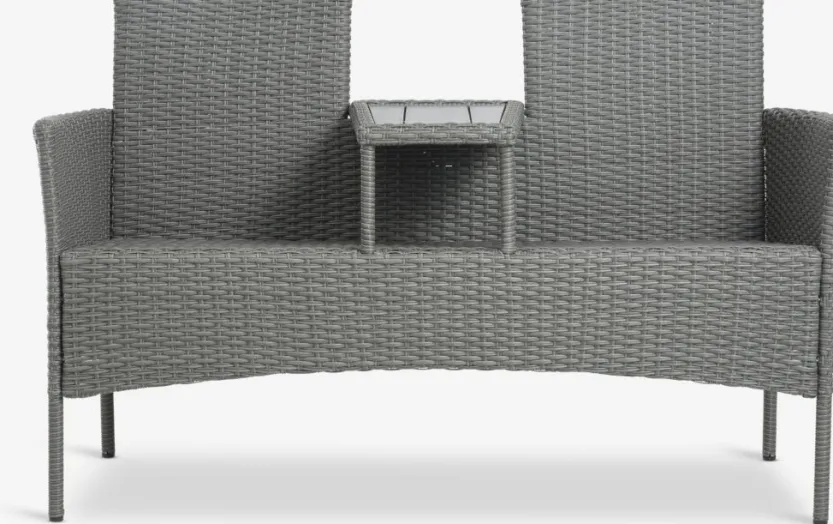 Staal, kunsthout en polyrotan. B138 x H83 x D61 cm