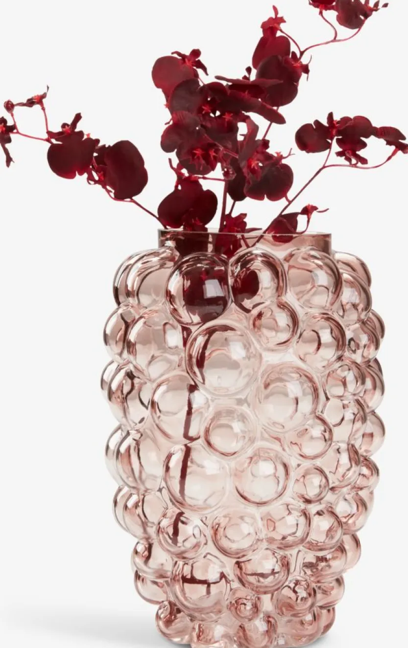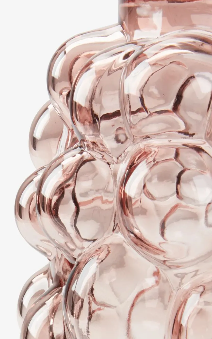 Roze glazen vaas met een bubbeldesign dat de vaas textuur en een speelse visuele expressie geeft. Ø17 x H24 cm