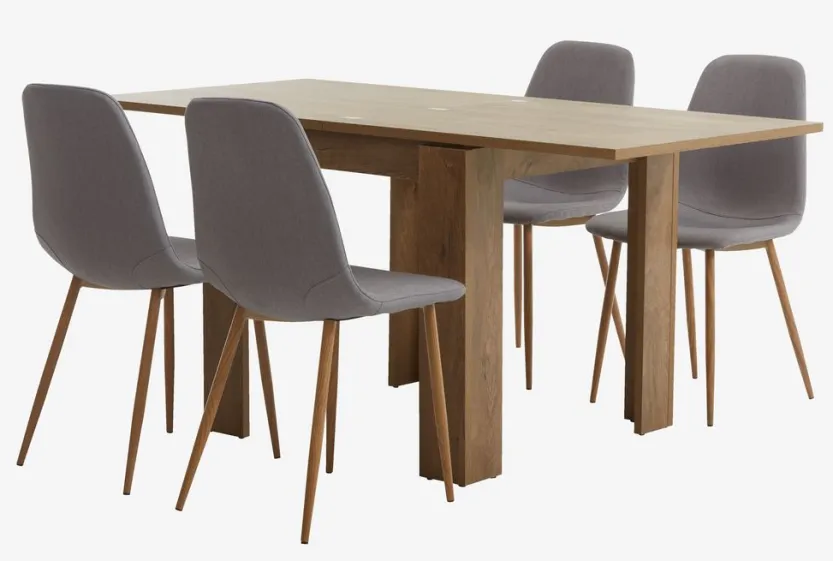 VEDDE L80/160 tafel wild eiken + 4 JONSTRUP grijs/eiken