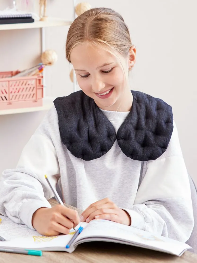 Verzwaringsdeken 1,5 kg met 100% kunststof parels. Het gewicht van de kunststof parels zorgt voor een gelijkmatige, stabiele druk op de schouders, waarvan bekend is dat een rustgevend en ontspannend effect heeft. 46% katoen/26% viscose/26% polyester/2% elastaan tijk. Incl. opbergtas. 35×35 cm