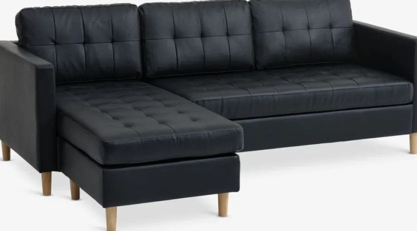 Bank FALSLEV chaise longue zwart kunstleer