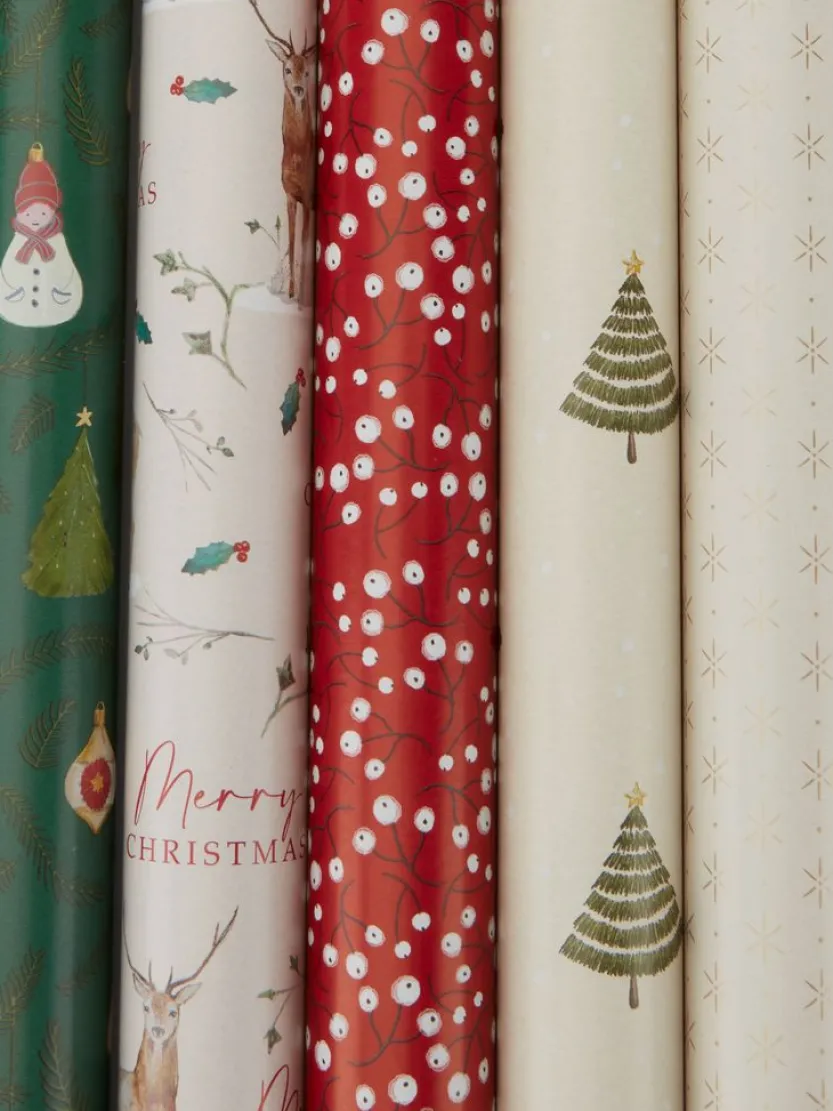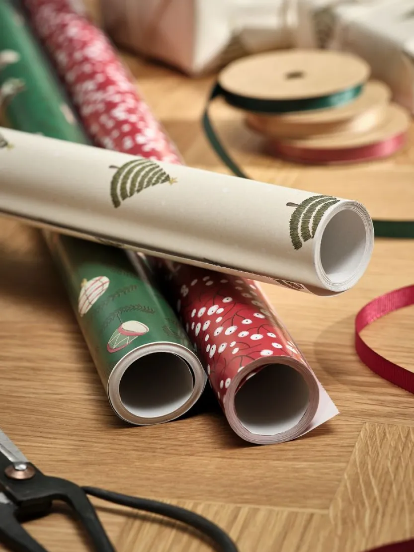 Kerstpapier met feestelijke motieven, perfect om je cadeauverpakking een vrolijk tintje te geven. Beschikbaar in verschillende kleuren en designs. B70 x L600 cm