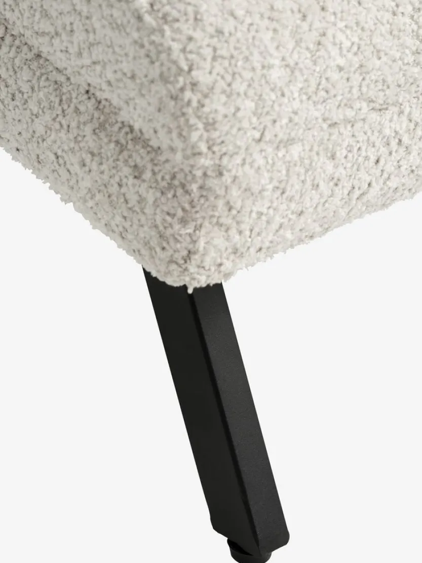 Teddy stof. Zit- en rugkussens van schuim. Poten van staal. B171 x H61 x D73 cm