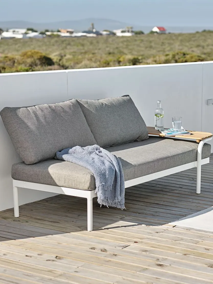 Daybed van aluminium en gelakt FSC® hardhout. Incl. luxe kussens met duurzame, structuurgeweven hoes. B181 x H71 x D87 cm