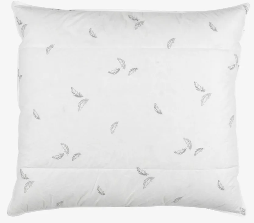 Eendendons kussen 60×63/70 cm met 4 kamers. Gevuld met 50% wit eendendons/50% eendenveren in de buitenste kamers en 85% witte eendenveren/15% eendendons in de binnenste kamers, 820g. Tijk van 100% cambric katoen. Wasbaar op 60°C.